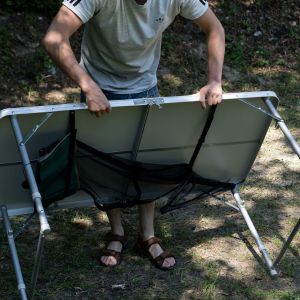 Includes: Movable standard picnic tables, lights and a grill