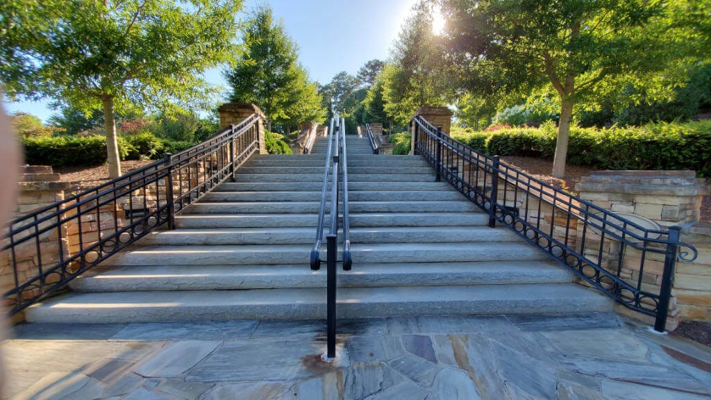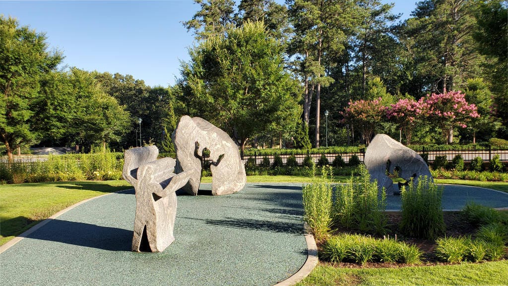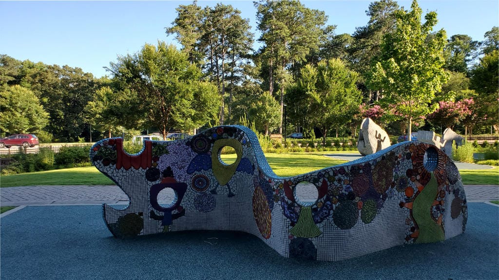 This park is known as the “Playable Art Park.” The playground equipment consists of commissioned art pieces that children can climb, swing, and slide on. This linear park runs along Abernathy road. It is impeccably landscaped with plenty of benches to enjoy the numerous flowers.